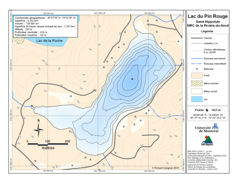 Au nord de St-Hippolyte, il est bordé par le Chemin des Hauteurs qui mène aussi au lac en Cœur et à la station de biologie de l’Université de Montréal.